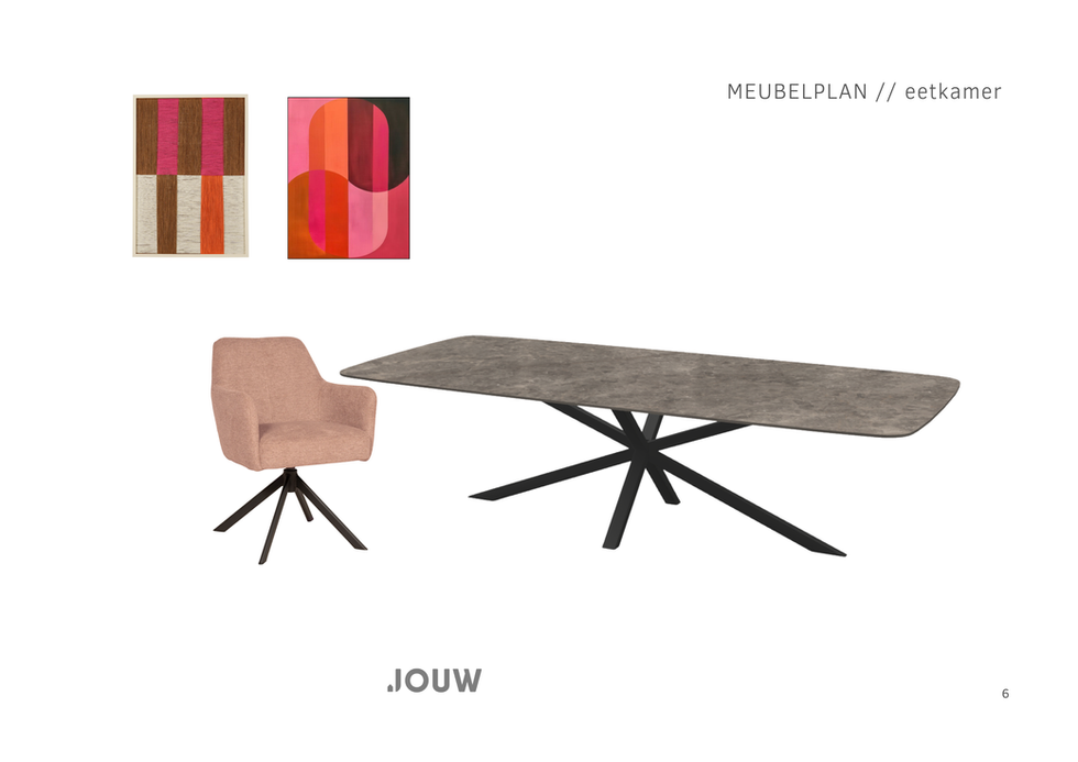 De stijl is een mix van landelijk, industrieel en chique, warm en gezellig, zonder dat het te zwaar of te lief wordt. Zachte stoffen worden gecombineerd met robuuste elementen, zoals een stevige eettafel, een lattenwand en het vloerkleed.